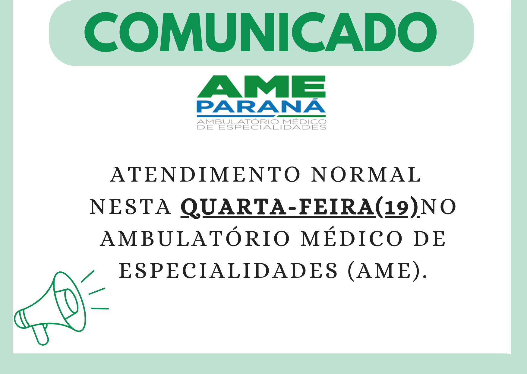 Restabelecida a energia eletrica do Ambulatório Médico de Especialidades (AME), os atendimentos desta quarta-feira (19) ocorrerão normalmente.