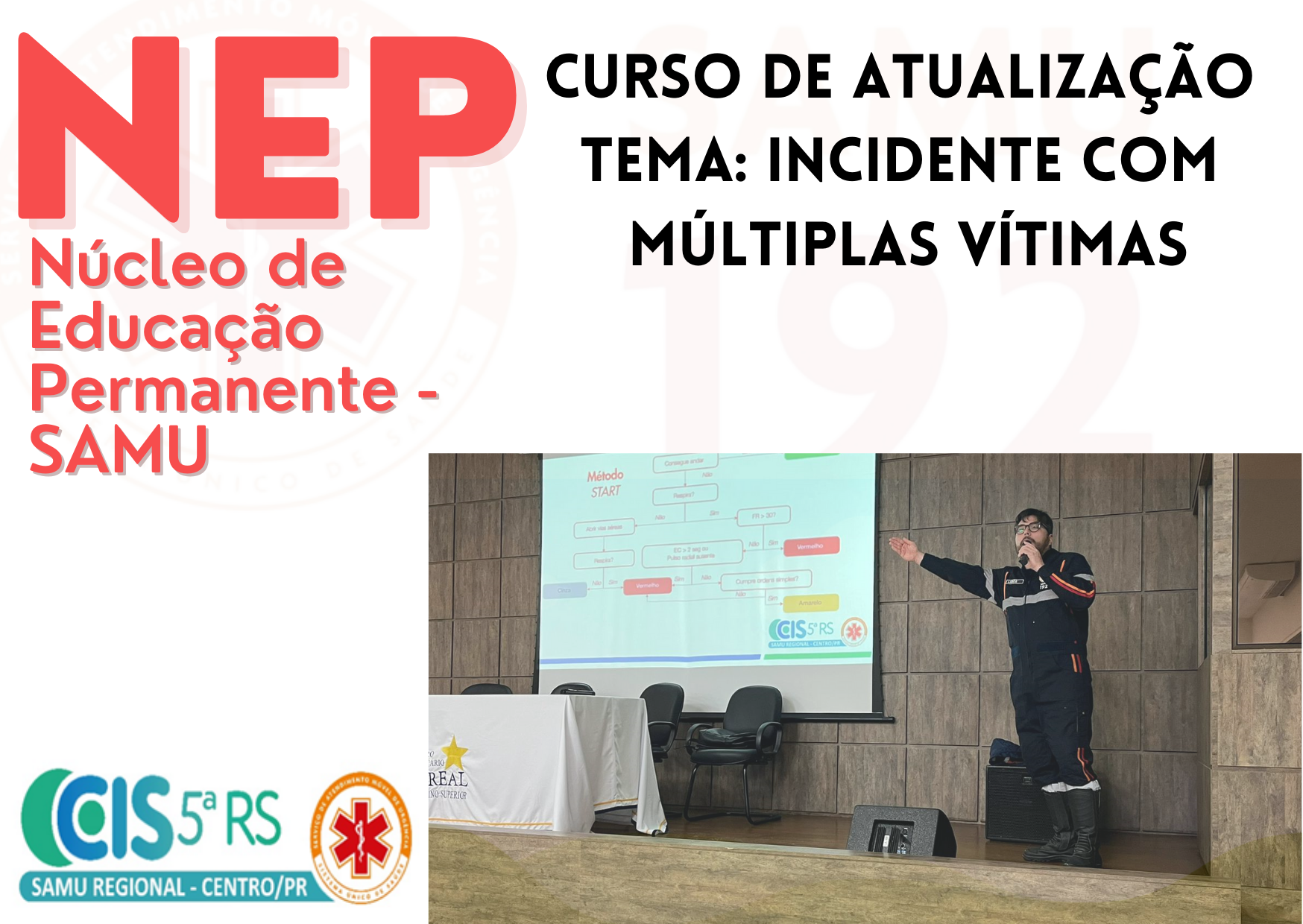 Ontem dia 18 de julho, as 19hs na faculdade Campo Real, aconteceu o curso Atualização com tema Incidente com Múltiplas Vítimas ministrada pelo Dr Rodrigo Lagos, do Núcleo de Educação Permanente do SAMU Regional (NEP).