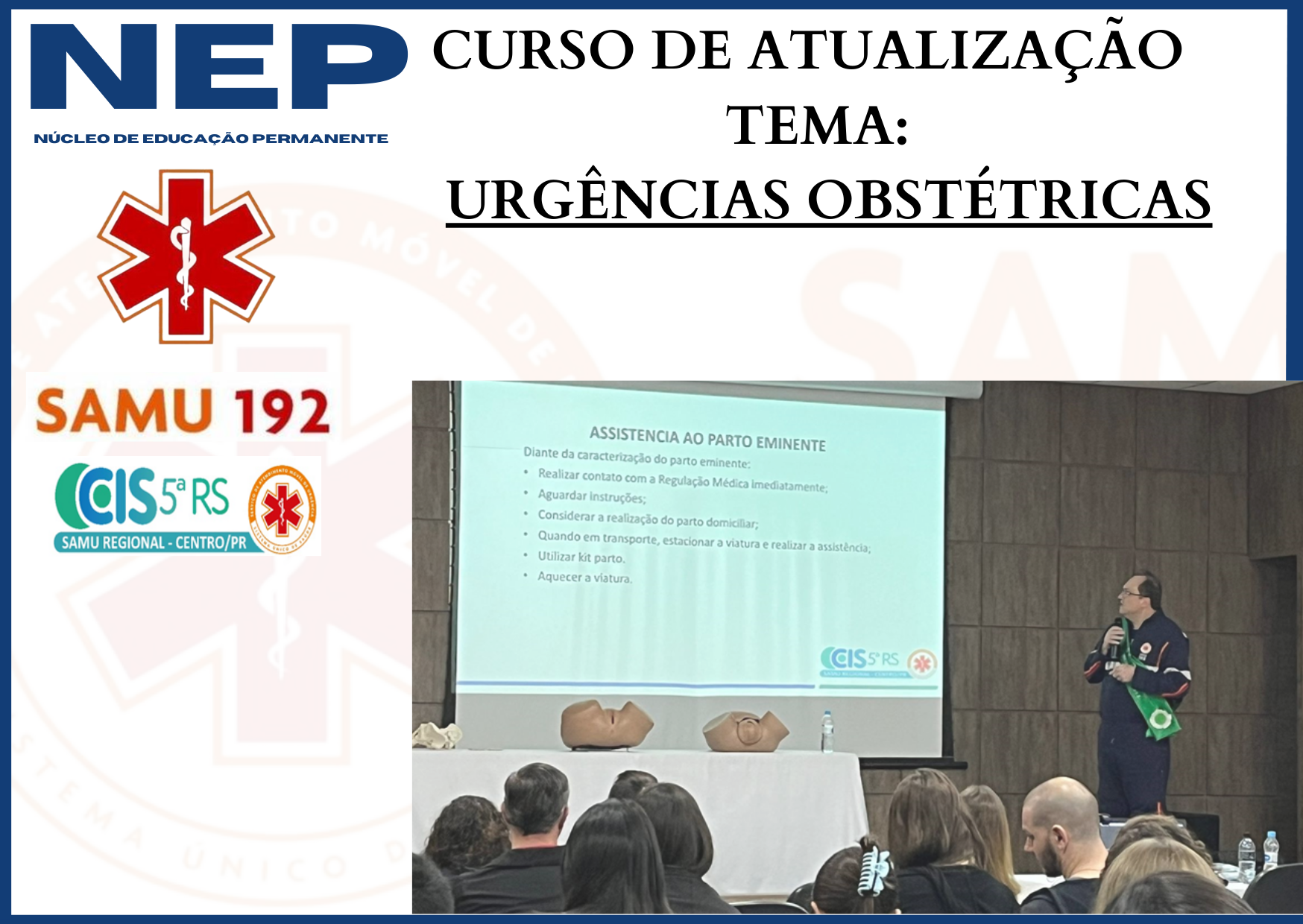 O curso foi promovido pelo Núcleo de Educação Permanente - NEP SAMU Regional Centro.